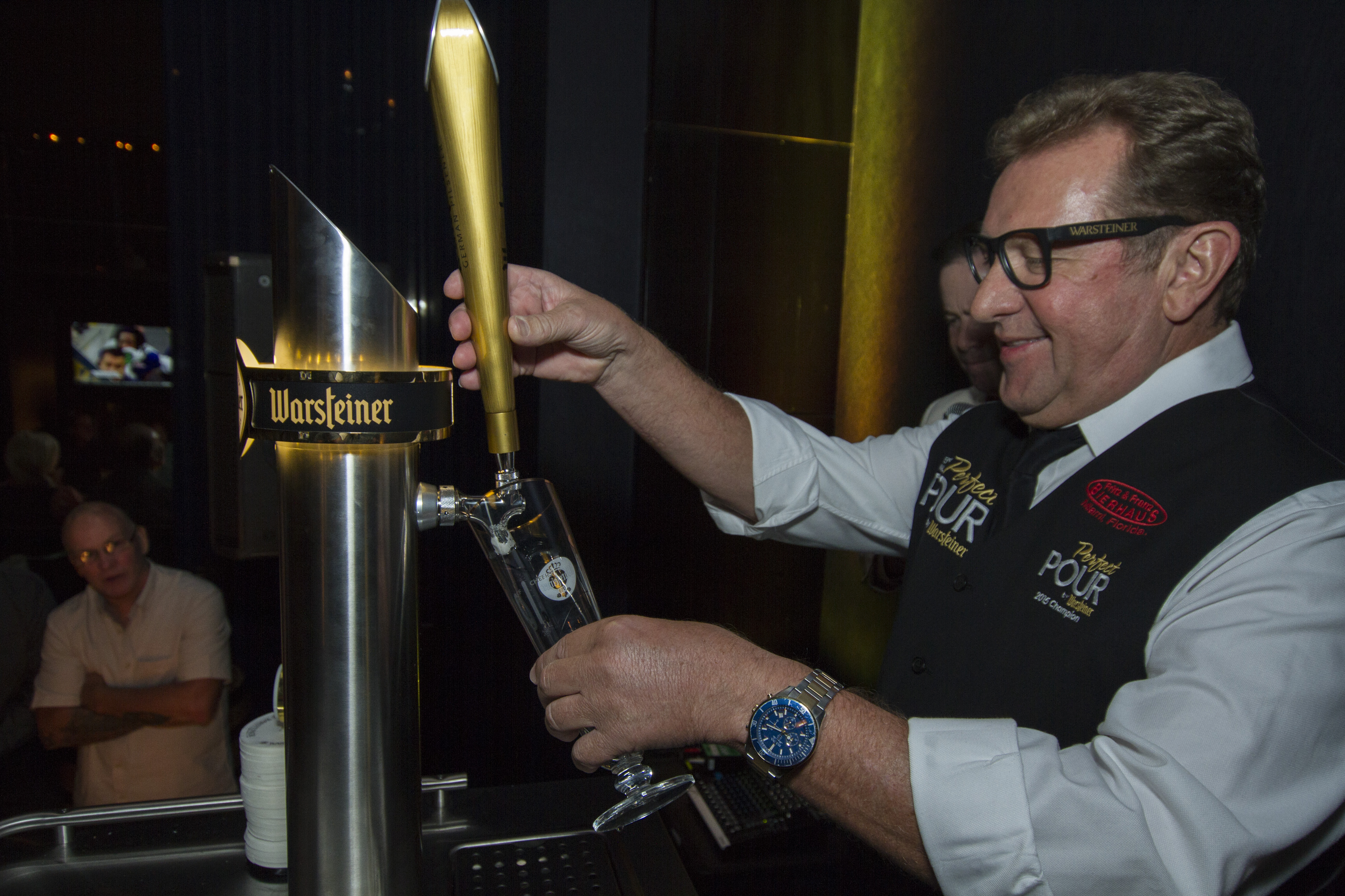 After a nail-biter of a finish, Harald Neuweg of Coral Gables, Florida, was crowned the winner. This is Harold’s second time winning the Warsteiner Perfect Pour contest. “Harold was very consistent with all three of his pours including his final pour of the night which was a work of art. Warsteiner salutes Harald on his second Perfect Pour title,” said Brian Reames, Warsteiner USA VP of Marketing. Two thumbs up for our two-time champion!
